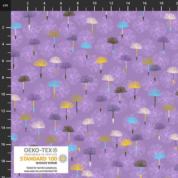 Spread the Seeds fabrics: Dandelion Seed Heads Lilac by Stof Fabrics