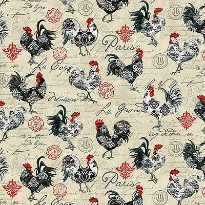 Le Poulet Fabric: Roosters Cream (per 1/4 metre)
