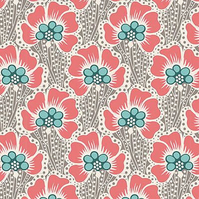 Tilda Cotton Beach: Ocean Flower Grey (per 1/4 metre)