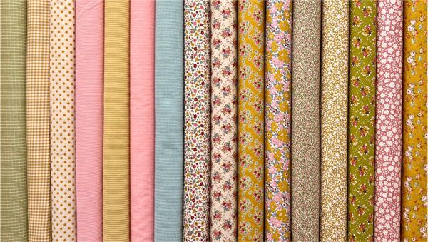 Tilda Creating Memories, Spring 5" Charm Pack. A selection of 32 fabrics from the Creating Memories Spring collection by Tilda, cut to approximately 5" squares. A mix of 9 cotton prints and 7 cotton wovens.
