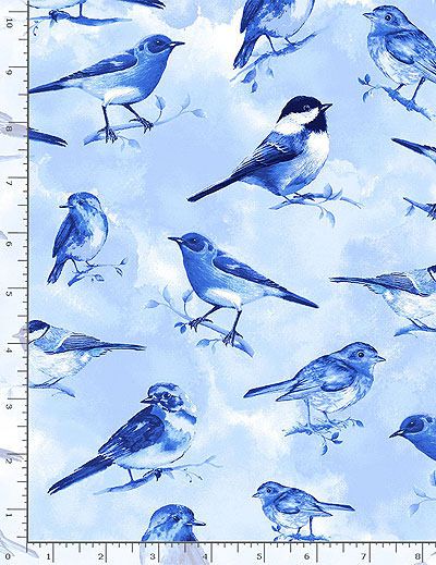 Fleur Fabric: Birds Sky Blue (per 1/4 metre)