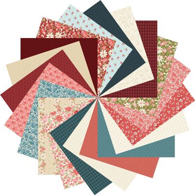 20 fabric squares cut to approximately 10" square. A selection of 20 prints from the Sentiments collection by Kaye England for Wilmington Prints