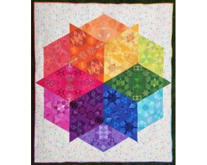 No fabrics are included! You have complete freedom as to what fabric you use although we will include recommendations for the “link” fabric used between the hexagon block in each section if you wish to create a similar look to the sample quilt above.