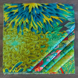 Welcome to our selection of Kaffe Fassett CollectiveBig Charm Packs. Designers Kaffe Fassett Brandon Mably and Philip Jacobs are the collective and each have their distinctive styles of fabric design and use a unified colour palette which helps to bind the fabrics and hence the patchwork quilts together. A design roll is a popular size of precut fabric where all the fabrics in the pack are cut to 10 square. The Free Spirit Big Charm is the same size as the popular Moda Layer Cake and our own Patchwork Palettes. We have a wide range of Kaffe Fassett Big Charm packs usually based around colourway.