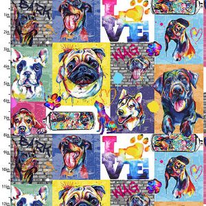 Dog fabrics featuring a variety of faithful friends from small puppies to big dogs! For patchwork quilting dressmaking homedec and sewing.