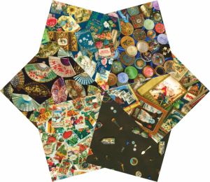 Ephemera, fabrics showing items from bygone days or collectables. Ticket stubs, photographs, prints, typo-faces, letters and more