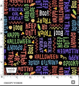 Halloween fabric, featuring skulls, bats, ghosts, witches and other creatures of the night. For that bespoke Trick or Treat experience we have a selection of Halloween fabrics for sewing, patchwork and home dec projects.