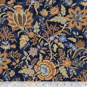 Alexandra by Williamsburg is a stunning blend of traditional and modern design elements which evoke a sense of elegance. Sophisticated Jacobean florals bold chevrons climbing vines and spaced wildberries in a handsome palette of parchment brass copper and navy create a rich and refined appeal. Hints of gold metallic throughout the collection lend a touch of luxury and glamour.