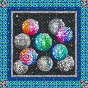 Disco Fabrics by Lewis & Irene. A sparkling explosion of glitter balls! Fabrics feature a metallic overprint in gold or silver.