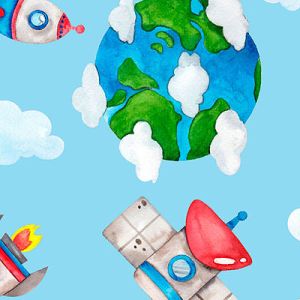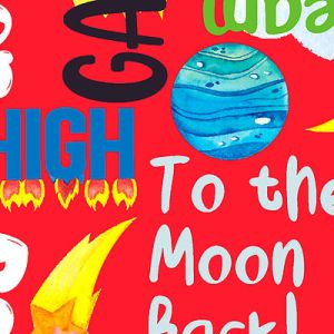 Space Fabrics, moon, stars, space rockets, aliens, stars and constellations.