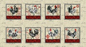 Roosters have played a role in the symbolism and folklore of many nations for thousands of years. For many people the rooster symbolises bravery and boldness as he defends his flock against all comers. In France roosters are often used to decorate church bells and watchtowers as the rooster symbolises vigilance…waking at dawn to alert the people to the start of a new day. Jennifer Brinley’s latest collection Le Poulet captures this bold and brave spirit in a palette of black scarlet and cream.