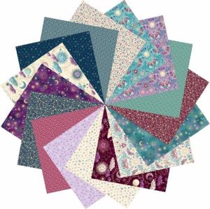Luna Fabrics from Makower. Luna was an ancient Roman Goddess, the divine embodiment of the Moon and the female counterpart to Sol, God of the sun. The Luna fabric range from Makower features rich hues, complex motifs and a golden metallic finish celebrates the eternal spectacle that is the night sky.