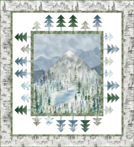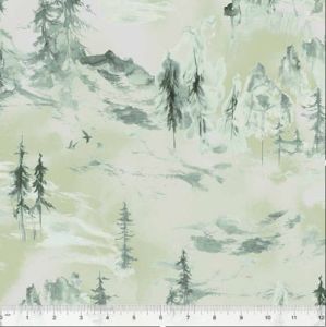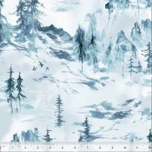 A magnificent mountain range panel ombre pine trees an icy texture and a serene winter wonderland capture the natural beauty of the outdoors. In a muted and subdued palette of soft blue misty grey dewy moss and shadowy charcoal Majestic will bring the splendor of nature to quilts wall hangings and home decor.