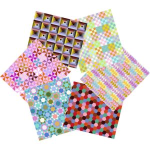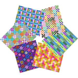 'This small scale and spirited collection of fabrics is an homage to our beautiful craft of quilt-making. Each print is a replica of favorite patchwork blocks realized in beautiful colours that range from cloudlike to jewel toned. The designs are at once modern and vintage. The delightful range of shapes and colours makes them equally stunning when they stand alone as garments or accessories or used as blenders between larger scale prints. Piecework is the perfect companion to any style of fabrics' - Anna Maria