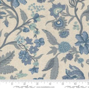 Sacre Bleu Fabrics by French General for Moda. Sacre Bleu, sacred blue or holy blue, has been the classic colour of France since the 15th century. Religion and politics both have claimed this colour to be the colour of courage. French General’s collection of blues is inspired by summers in France and dyeing antique white linen scraps into a beautiful shade of Woad blue.