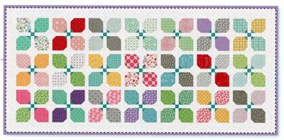Pretty Petals Runner kit using the fabrics from the Piece & Plenty range by Lori Holt of Bee in my Bonnet for Riley Blake Designs, in a keepsake box. Kit includes exclusive pattern and fabric for top and binding. The backing fabric is not included in this kit. This kit also comes in a smart keepsake box that coordinates with the quilt. The box size is approximately 10" x 9‐1/2" x 3".