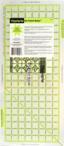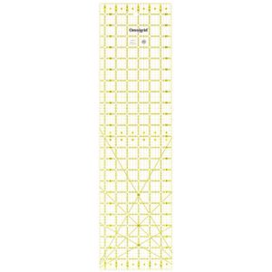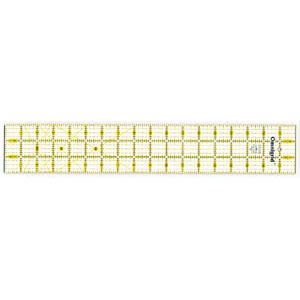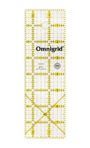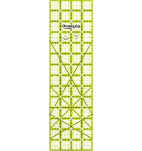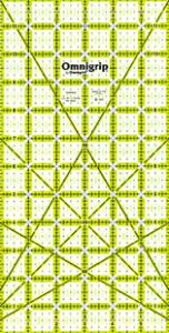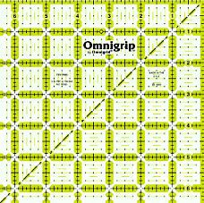 We have been selling Omnigrid rulers for 3 decades because we believe they are the best patchwork rulers on the market. Omnigrid patchwork rulers are consistently accurate and reliable and we use them everyday in the shop. Contrasting yellow and black lines allow the grid to be seen on light or dark fabrics. Omnigrip rulers are neon coloured and slide easily across fabric. Press down and the backing "grips" the fabric so you can rotary-cut with confidence.